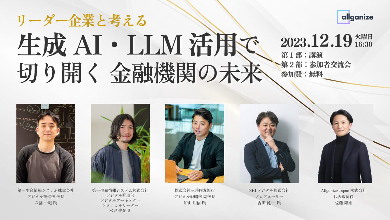 Allganizeは、2023年12月19日に金融機関様向けの生成AIイベント「生成AI・LLM活用で切り開く金融機関の未来」を東京・渋谷にて開催しました。