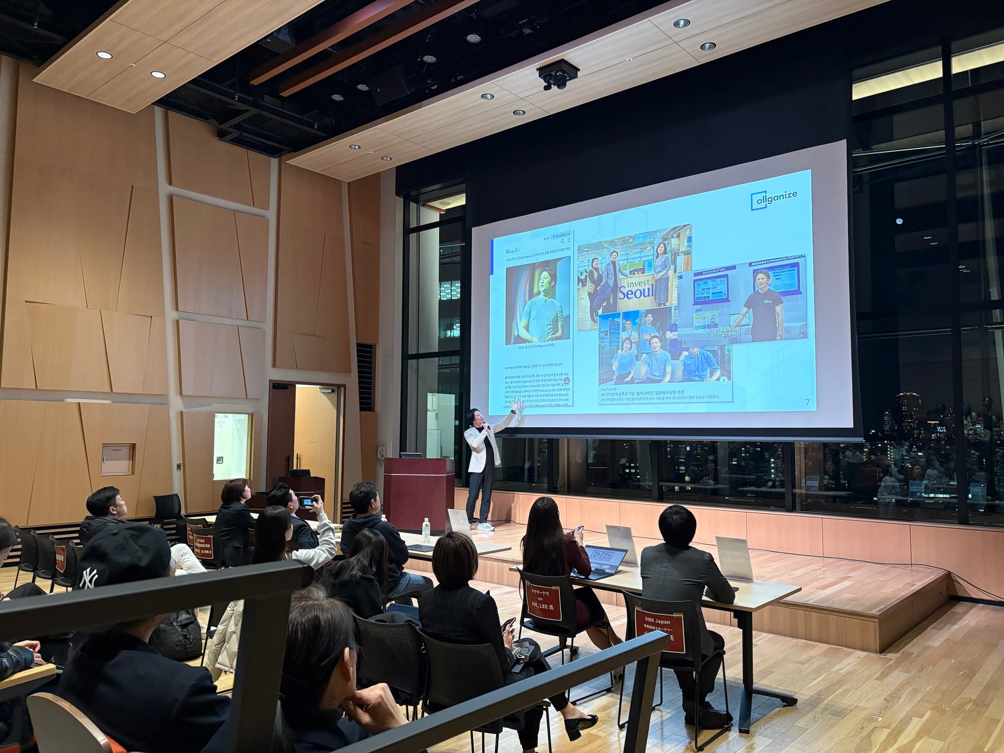 同イベントは、「世界を席巻する韓国発テクノロジーとイノベーション、次世代を創出するエコシステムと日本との共創の可能性」と銘打った内容となっており、JETRO様から韓国のイノベーションエコシステムの紹介があった他、韓国を含む日米韓を中心にグローバルで事業展開をするスタートアップとして、弊社Allganizeのチャレンジについてお話の機会がありました。