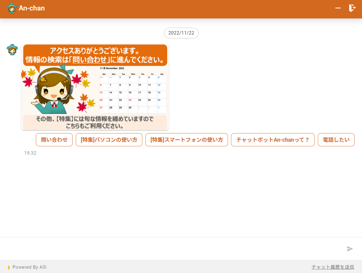 弊社のチャットボットには「An-chan(アンちゃん)」というキャラクターを設定しています。このAn-chanが、チャットボットの利用促進という観点で重要な存在となっています。