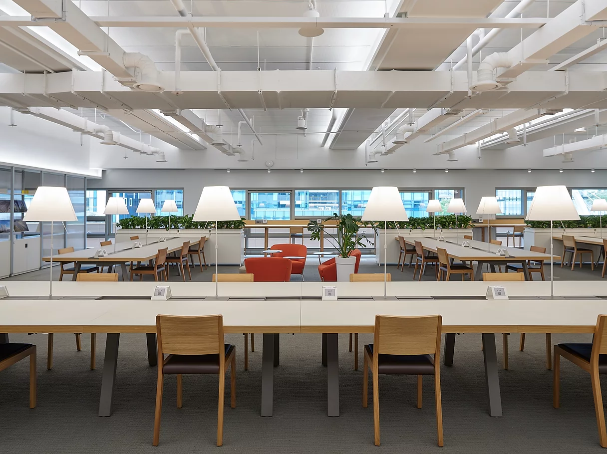 オフィス空間は、コンセプト(ライブラリー、ホーム、ファクトリー、グリーンハウスなど)によって6つに分かれています。