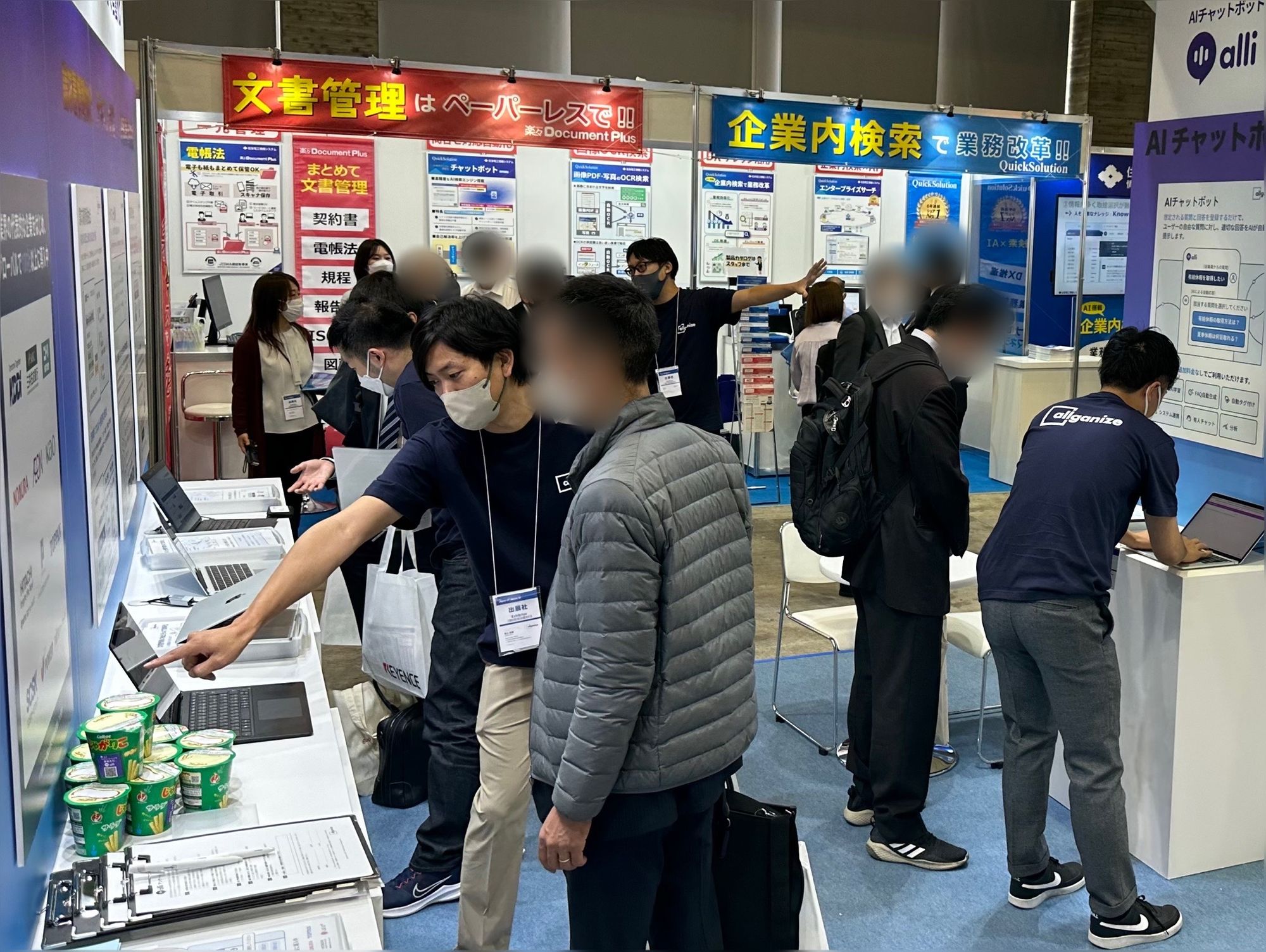 おかげさまでブースはとても盛況で、AIチャットボット「Alli(アリィ)」や「請求書情報抽出」など、たくさんのお問い合せを頂戴し、Allganize Japan社員一同、とても嬉しく感じております。