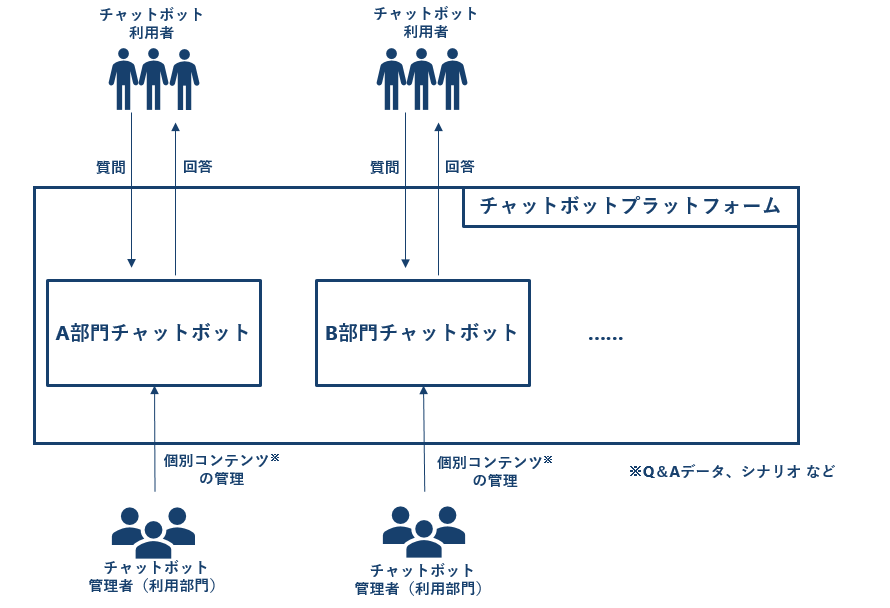 当社では下図のような「チャットボットプラットフォーム」を構築しています。