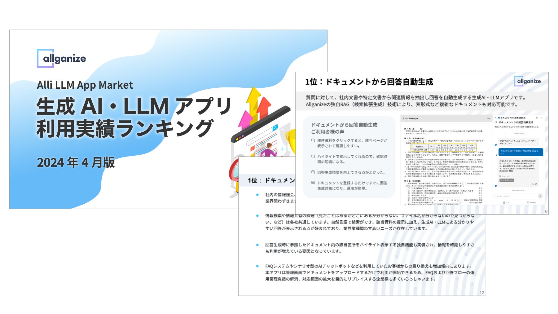 Allganize Japanは、Allganizeが提供する「Alli LLM App Market」上における「生成AI・LLMアプリ利用実績ランキング」2024年4月版を公開しました。