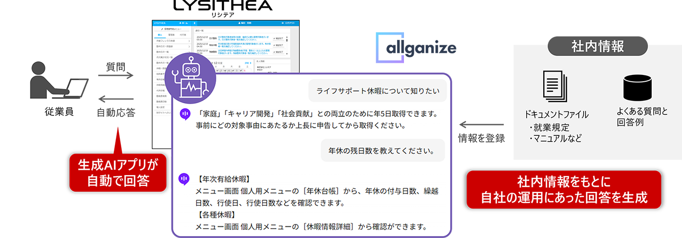 Allganizeのオールインワン生成AI・AIエージェントプラットフォームAlli LLM App Marketが、パートナー企業である株式会社日立ソリューションズ様が開発・提供する就業管理システム「リシテア」と連携を開始しました。