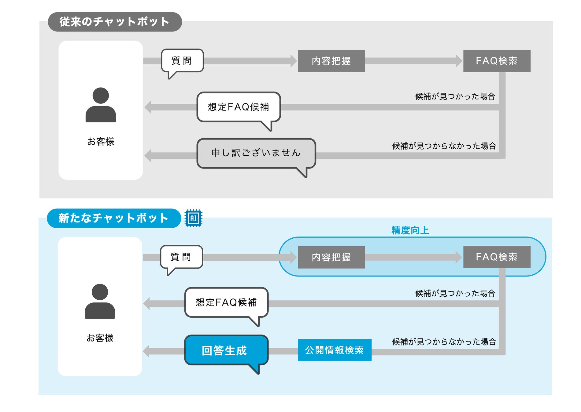 現在の東京メトロHP上チャットボットは、想定しているFAQをもとにお客様からのご質問に回答するものでしたが、多様化するお客様のご質問に回答しきれないことがありました。このため、従来の機能に加えて、生成AIを活用することで、公式WEBサイトの情報などからも適切に回答を生成して、チャットボットで回答可能なお問合せの範囲を拡大し、利便性を向上させていきます。