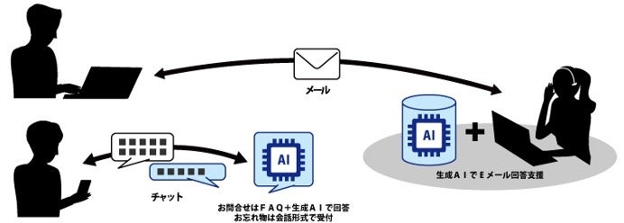 本取組みでは、Allganizeによる「Alli LLM App Market (ALAM)」の生成AIアプリを活用し、① チャットボットの機能の高度化、② お忘れ物に関するお問合せ方法の改善及び③ メールへの対応支援ソリューションを構築します。