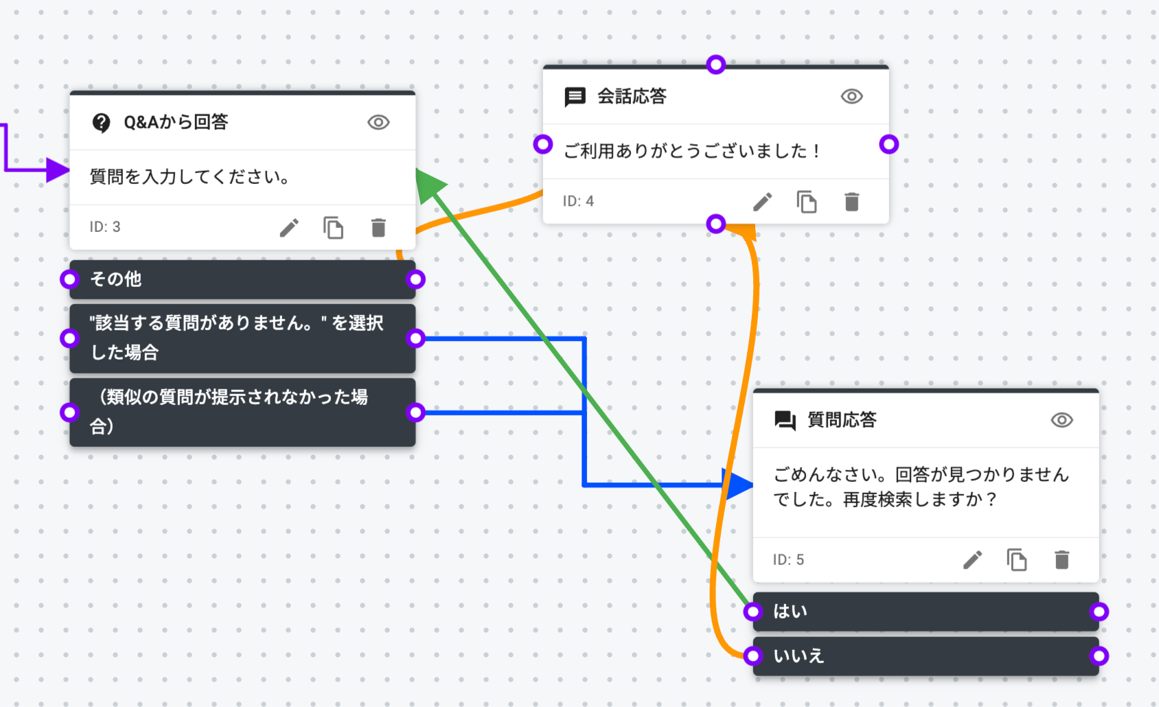 チャットフローで、各ノードを繋ぐ矢印は一つ一つ、カスタマイズが可能です。
